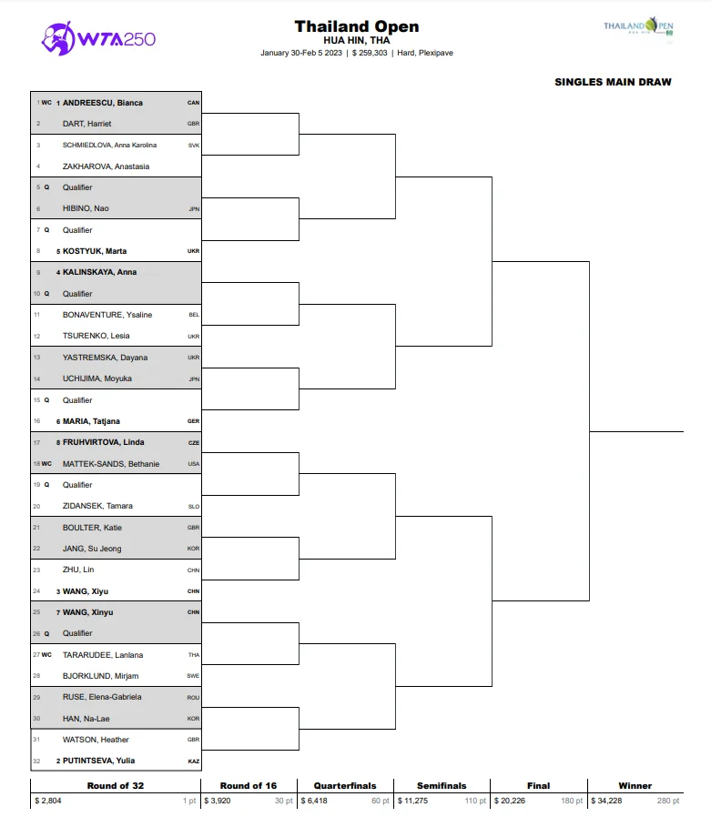 Right after the end of the inaugural Grand Slam tournament in 2023, the action in Hologic WTA Tour continues to roll on. One of the venues in the following week will be Hua Hin, which hosts the competitors of WTA 250 Thailand Open.