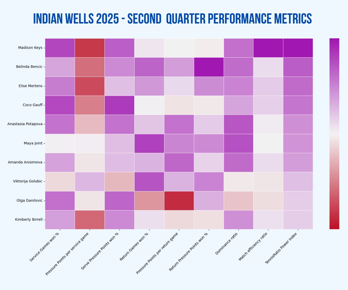 This section also features several players who have shown promising form this year, including Karolina Muchova, the ever-consistent Linda Noskova, and notable names such as Marta Kostyuk and Ons Jabeur. Jabeur could set up an intriguing matchup with Dayana Yastremska, as both are highly ranked in performance metrics.