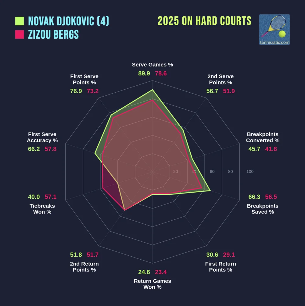 Across the net stands Zizou Bergs, the 26-year-old Belgian who saved two match points in a thrilling 3-6, 7-5, 7-6 comeback victory over Gabriel Diallo to reach his first Masters 1000 quarterfinal. Trailing 6-7 and then 7-8 in the final-set tiebreaker, Bergs produced clutch tennis when it mattered most, ultimately prevailing 10-8 in the breaker after two hours and 49 minutes. The Belgian has defeated three seeded players en route to this stage, including Casper Ruud, Francisco Cerundolo and Diallo, showing he belongs at this level. He came back from a set down against the Norwegian who was very close to take the victory before retiring in third set. Bergs has enjoyed a solid 2025 season, reaching finals in Auckland and Hertogenbosch, compiling a 31-25 win-loss record with 25-16 on hard courts. Bergs possesses the physical tools to trouble opponents, though he faces an entirely different challenge against the most successful player in Masters 1000 history.