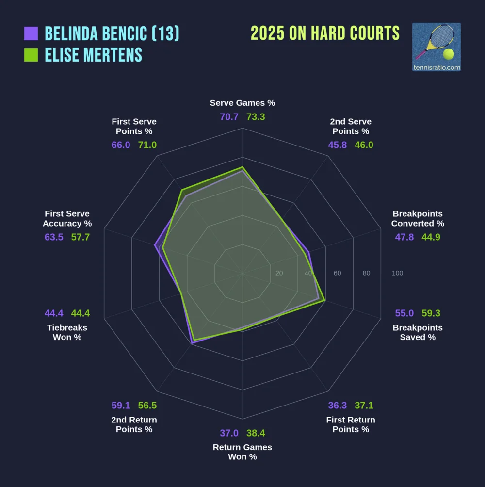 Belinda Bencic and Elise Mertens set up the interesting battle for a spot against Iga Swiatek in round of 16. The Swiss and the Belgian had a strong start to the season, decorated with WTA 500 title won by Bencic in Abu Dhabi and WTA 250 trophy won by Mertens in Singapore. Both were successful on grass, as Mertens doubled her tally of the year winning in Libema Open, while Bencic was a semifinalist at Wimbledon. Their recent form on hard courts is not as stellar as neither managed to make into quarterfinal of any tournament since start of US Open, but both are well known from consistency and abilities to put the opponents in uncomfortable position with their play.