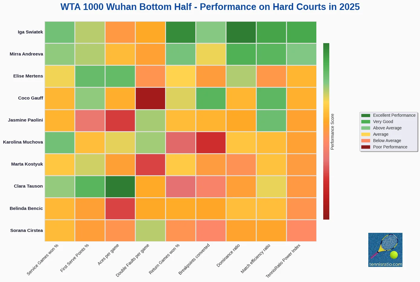 Dongfeng Voyah Wuhan Open is the last WTA 1000 tournament in 2025 calendar. The main draw action starts on Monday 6th October with the stellar field. The champion from last year Aryna Sabalenka comes back to competition after getting a few weeks of rest following her victorious campaign in US Open. All the top players are there to play for the big prizes apart a few names. Madison Keys is sidelined since US Open. Daria Kasatkina has withdrew before the tournament due to back injury. Elina Svitolina has already ended her season to take rest after challenging campaign. The bad luck happened to recent convalescents - Qinwen Zheng, Barbora Krejcikova and Paula Badosa withdrew due to injuries sustained just after coming back from long recoveries.