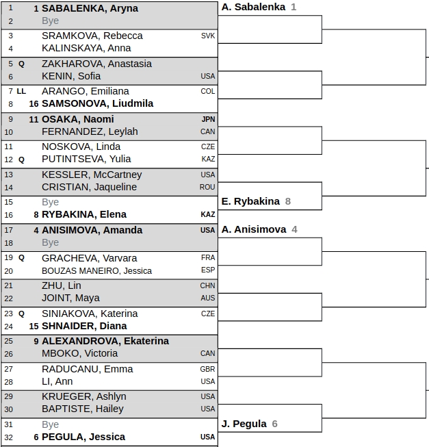 While the whole field is impressive, the upper half of the bracket concentrates players who have achieved much of success recently. Top quarter consists Sabalenka and 8th seed Elena Rybakina who is probably the most lethal player on serve and displayed a very consistent form during American hard courts swing. Sabalenka will start from second round, playing against Rebecca Sramkova or Anna Kalinskaya. Rybakina can meet the semifinalist of US Open and finalist of Canada Open - 11th seed Naomi Osaka, as early as in her second match in the tournament. Firstly, Osaka needs to defeat Leylah Fernandez in one of first round's hit clashes, to await a possible match-up against the finalist of WTA 1000 Beijing Linda Noskova in second round.